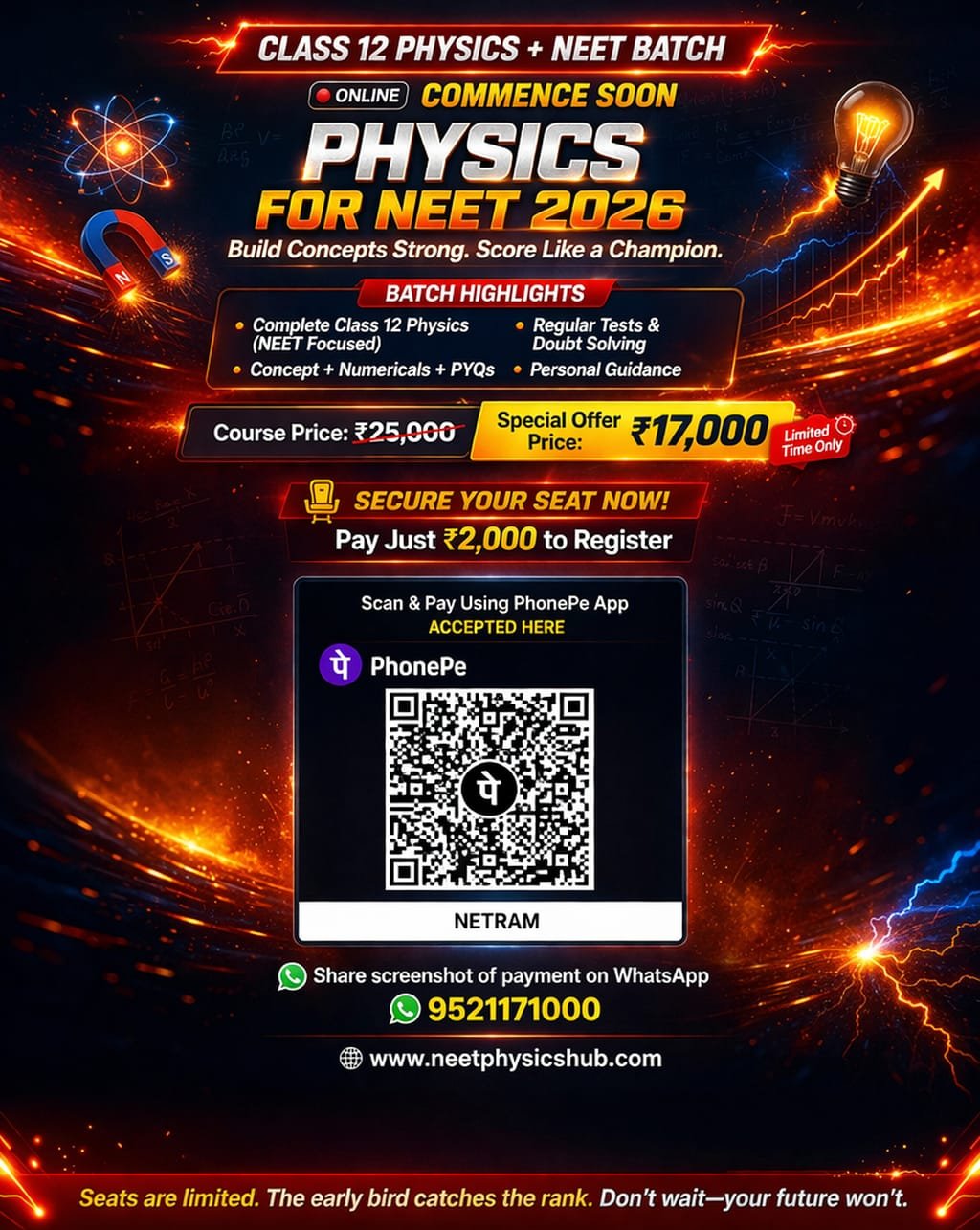 This 1-Year Dedicated Physics Course for Class 12 students is designed to build a strong conceptual foundation while ensuring excellent performance in board exams and competitive exams like NEET/JEE.